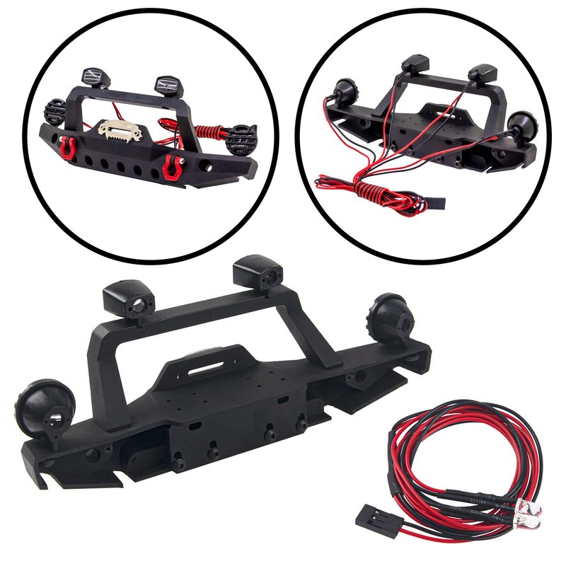 - The metal front bumper is equipped with 4 LED headlights,the rear bumper has 2 led mount hole,it can install 2 Led light headlights. Led Light Color:White