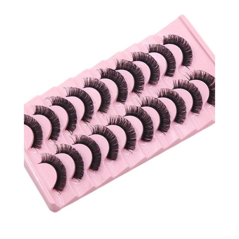 VGTE False Eyelashes Russian Strip Lashes D Curl Wispy Fluffy Natural 3D Faux Mink Lashes 10 Pairs Pack (3D T21)