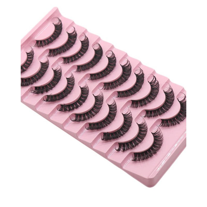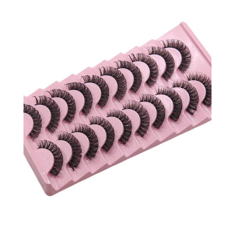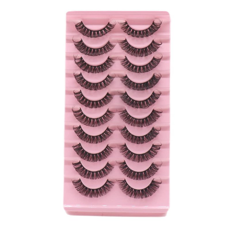 VGTE Russian Strip Lashes Fluffy Wispy D Curl False Eyelashes Dramatic Fluffy Wispy Natural Cat Eye Lashes 10 Pairs Pack (3D T24)