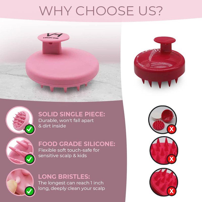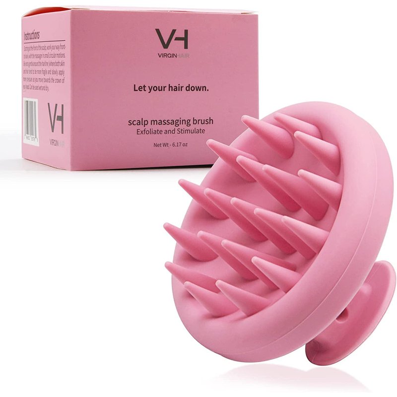 VH VIRGIN HAIR- Scalp Massager for Hair Growth - Scalp Brush, Scalp Scrubber for Hair Care & Hair Loss Treatment. Hair Oil/Serum Massager for Women 100% Silicone. Pink