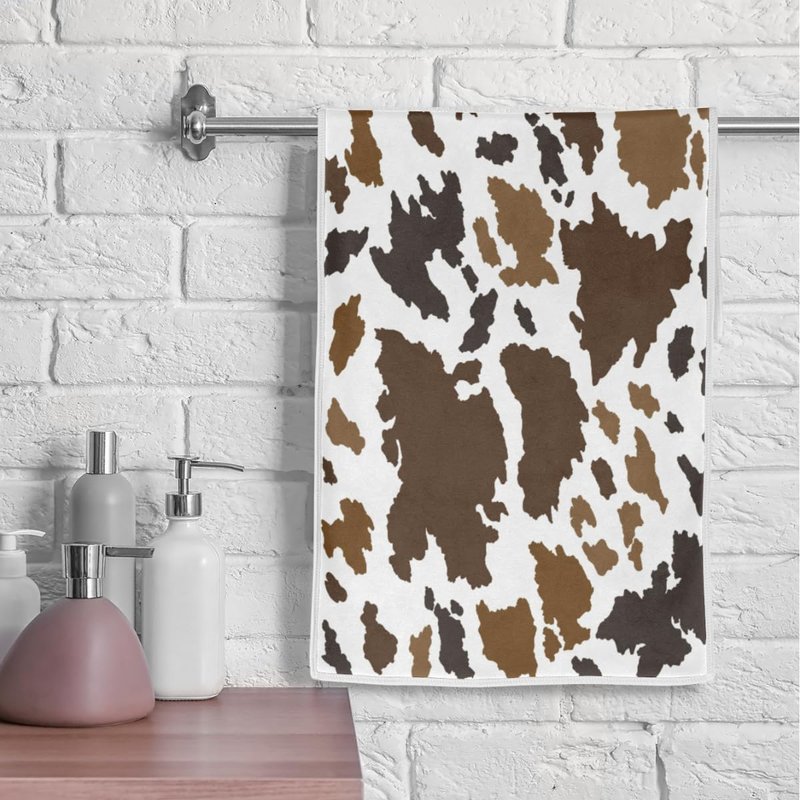 Vhcawsu Cow Prints Hand Towel Brown Animal Spots Theme Towels Soft Bathroom Hair Drying Towels Highly Absorbent Bath Towel for Spa Gym Sport 16" X 30"