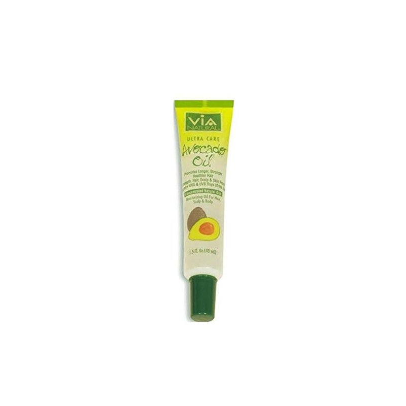 VIA Natural Ultra Care Avocado Oil 1.5 oz Helps restore overall health to hair & scalp by infusing Essential Nutrients such as Protein, Vitamins, Minerals which nourishes each hair strand. Helps strengthens weak hair by penetrating nutrients & vitamins into the hair and scalps. Helps block harmful UVA & UVB rays from the sun. Excellent for all textures and styles including Natural styles, braids, extensions and chemically-treated or colored-treated hair