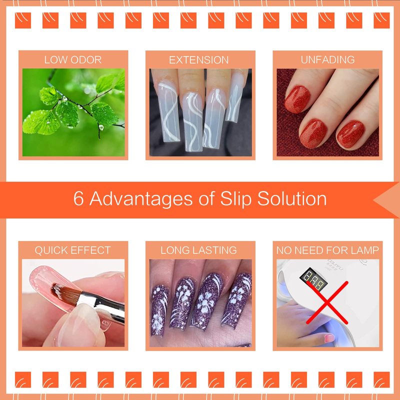- 【MULTI-PURPOSE】This poly gel slip solution kit is suitable for beginners and lovers of nail art. Suitable for all types of manicures and nail extensions, including acrylic nails, UV gel nails, natural nails and more.