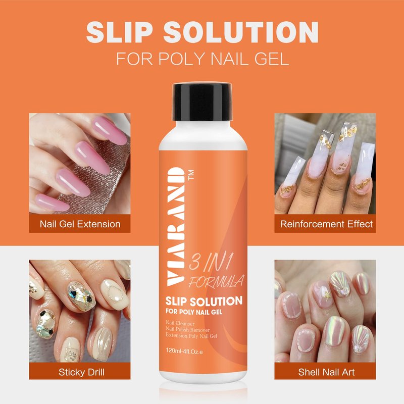 - POLY GEL SLIP SOLUTION: Help you effortlessly and smoothly spread and shape the poly uv gel;prevent the gel sticking to the brush, spatula or other nail art tools.