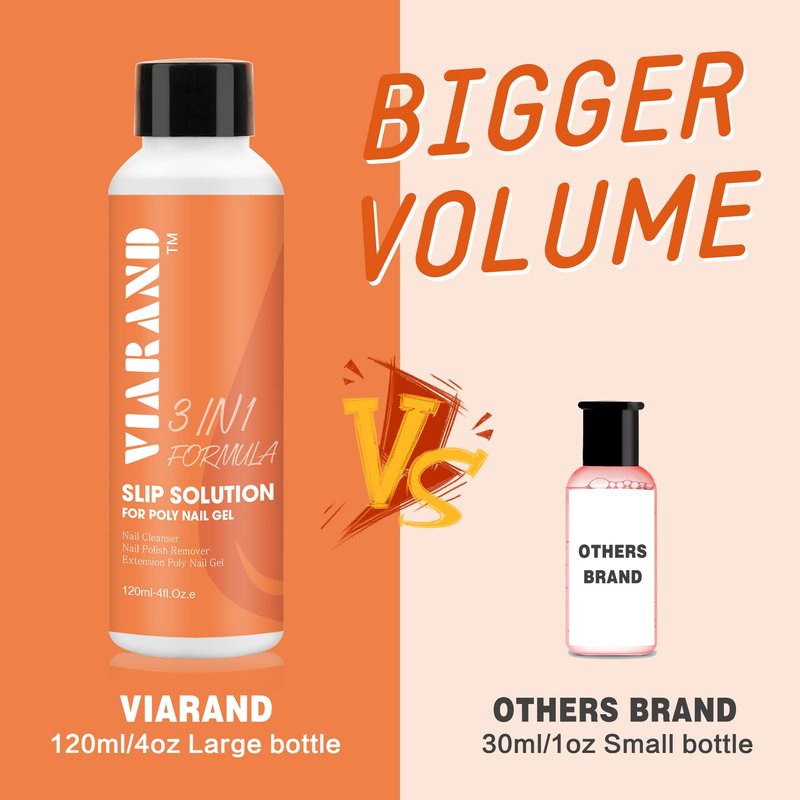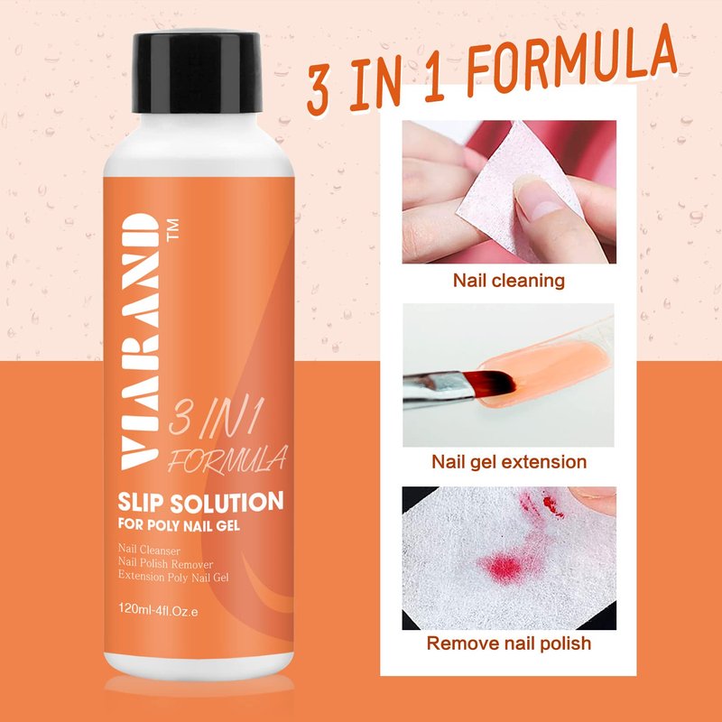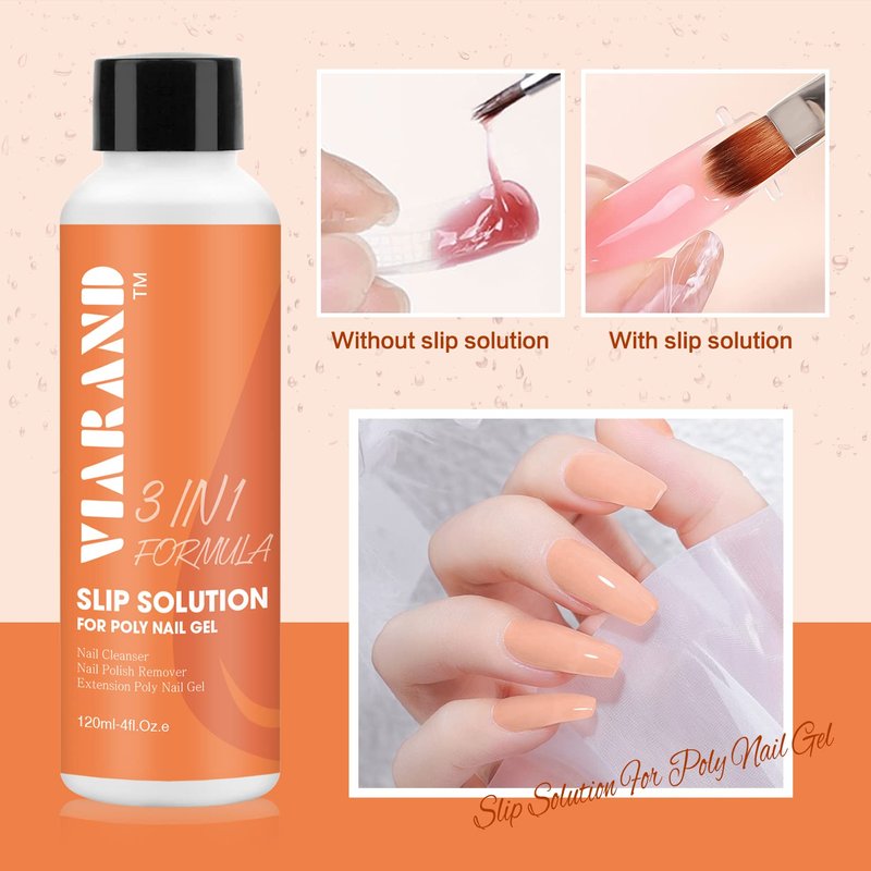 VIARAND 4oz Slip Solution Poly Gel, 3 in 1 Formula(Nail Cleanser+Nail Polish Remover+Slip Solution for Poly Nail Gel)with Gel Nail Brush,Glass Cup,Easy DIY Poly Nail Gel