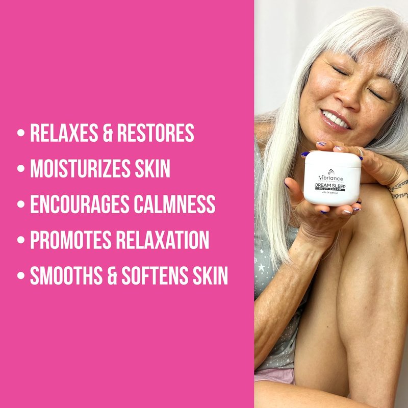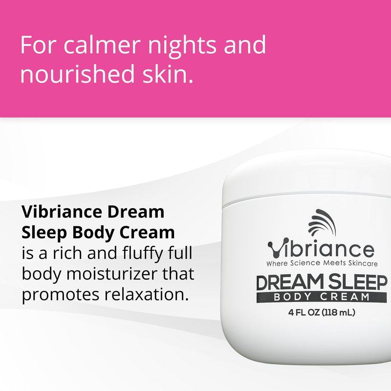 - PROMOTES RELAXATION: Vibriance Dream Sleep Body Cream provides incredible moisturization and long lasting softness to the skin. Use it before bedtime or any time you want to unwind and destress.