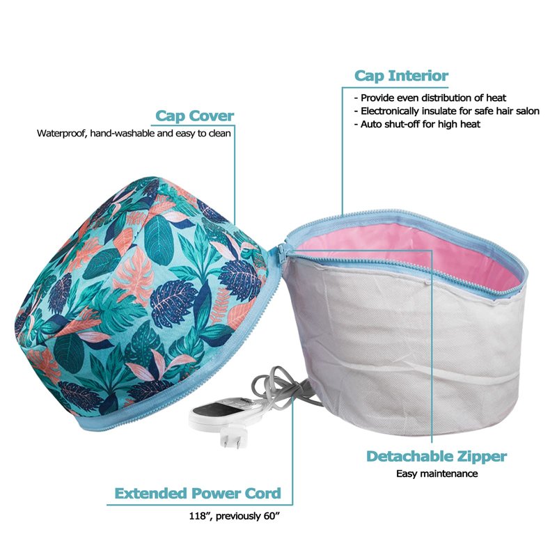 - PERFECT SIZE FOR HOME HAIR SALON – VICARKO Hair Steamer Heat Cap is wide and deep, ensuring you easily cover the back, front and edges of your head. One size fits most with an adjustable drawstring around the zipper. The upgraded extended power cord (118”, previously 60”) allows you do your work without restricting movement while sitting under the cap. The foldable compact size makes the cap easily store and carry.