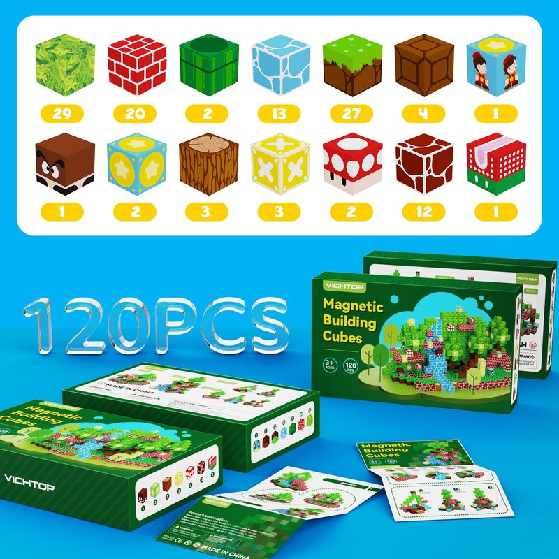 VICHTOP 120Pcs Magnetic Blocks - Build Mine Magnet World Set, 1" Magnetic Cubes, STEM Sensory Montessori Building Toys Christmas Birthday Gifts for Boys & Girls Age 3 4 5 6 7 8-13 Years Old