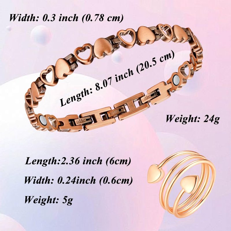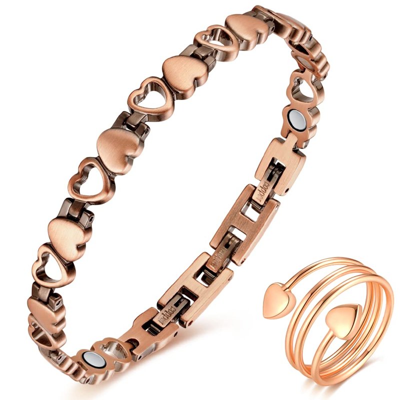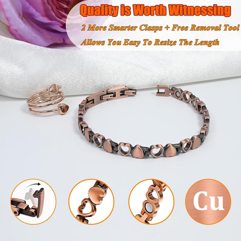 - Pure Copper Bracelet and Ring: Crafted from 99.9% solid copper, NO LEAD and NICKEL, ensuring durability and strength. The bracelet and ring resist fading, rust, and oxidation thanks to a long lasting coating, making them scratch resistant and better for everyday wear. Experience the advantages of pure copper, complete with a finish and protective coating that extends its durability.