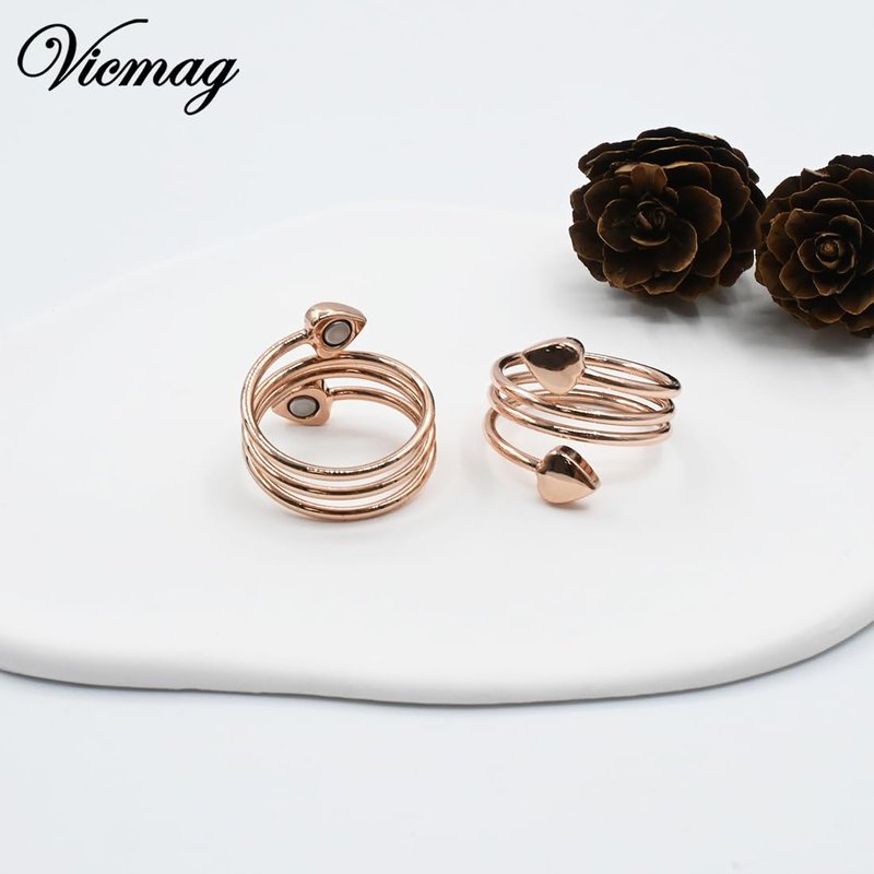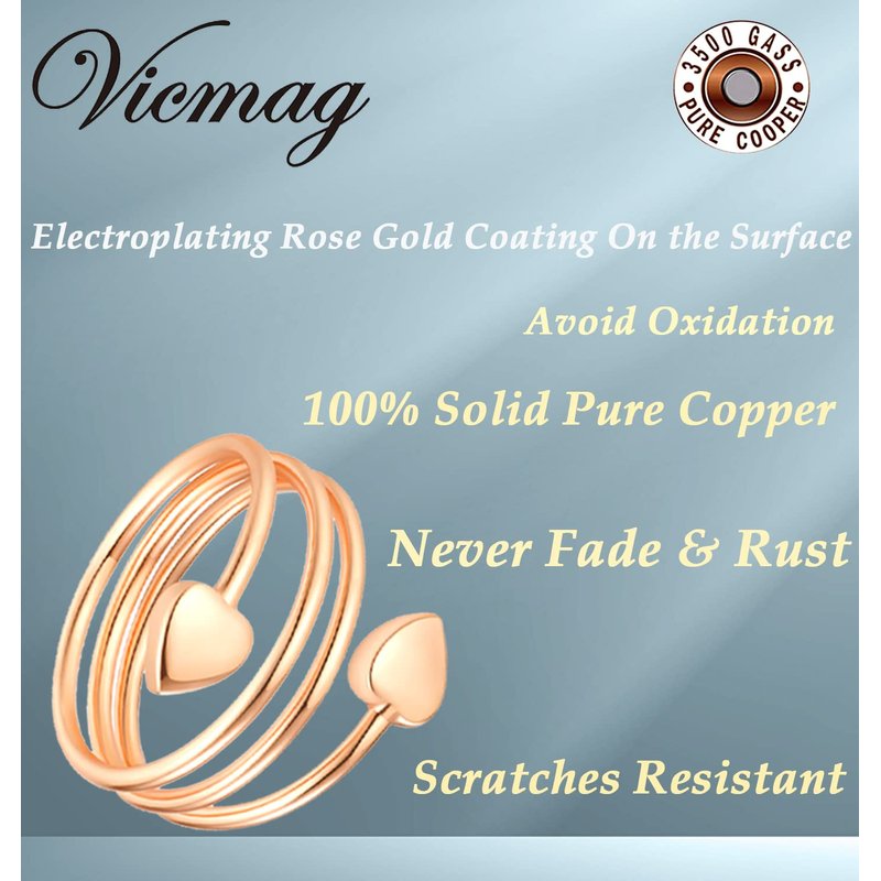 Vicmag Copper Magnetic Ring for Women Ring Ladies Fingers Thumb 99.9% Solid Pure Copper Gift 2PCS Adjustable (Rose Gold Heart)