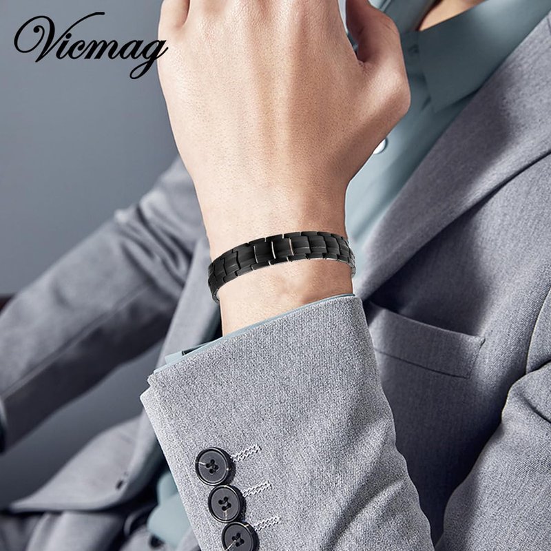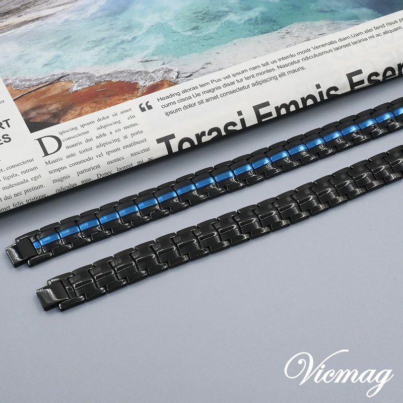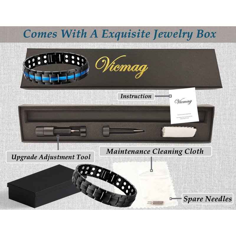 Vicmag Men Magnetic Bracelets Titanium Steel Magnet Bracelet Ultra Strength Double Row Brazaletes with Adjustment Tool & Gift Box