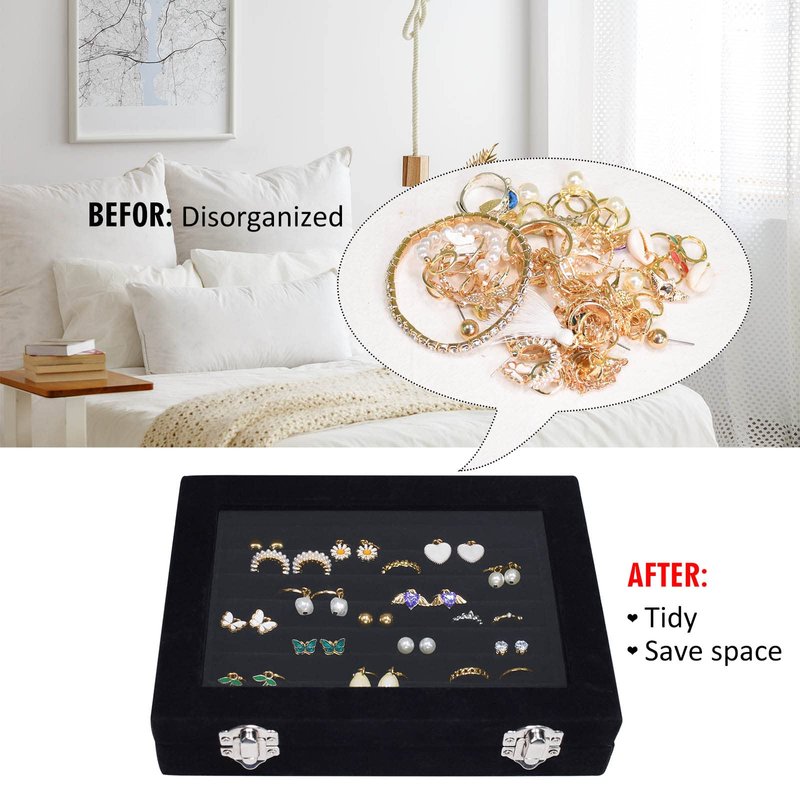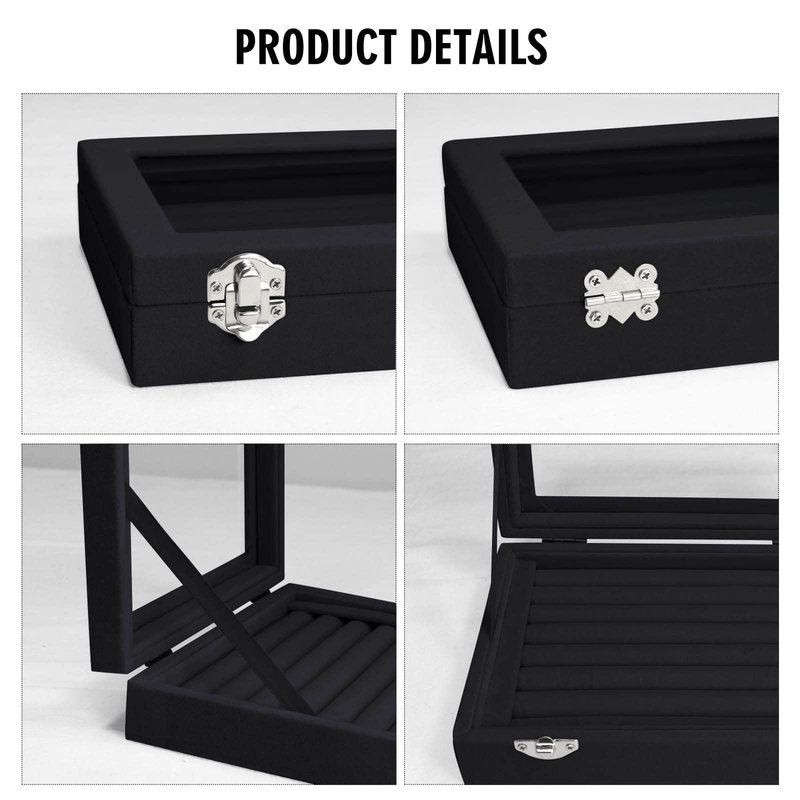 - Focus on practicality: The lid is composed of a transparent glass lid, which can quickly discover the jewelry you are looking for through the glass. To prevent the lid from accidentally opening when carrying the jewelry display box, we have adopted a design of two locks.