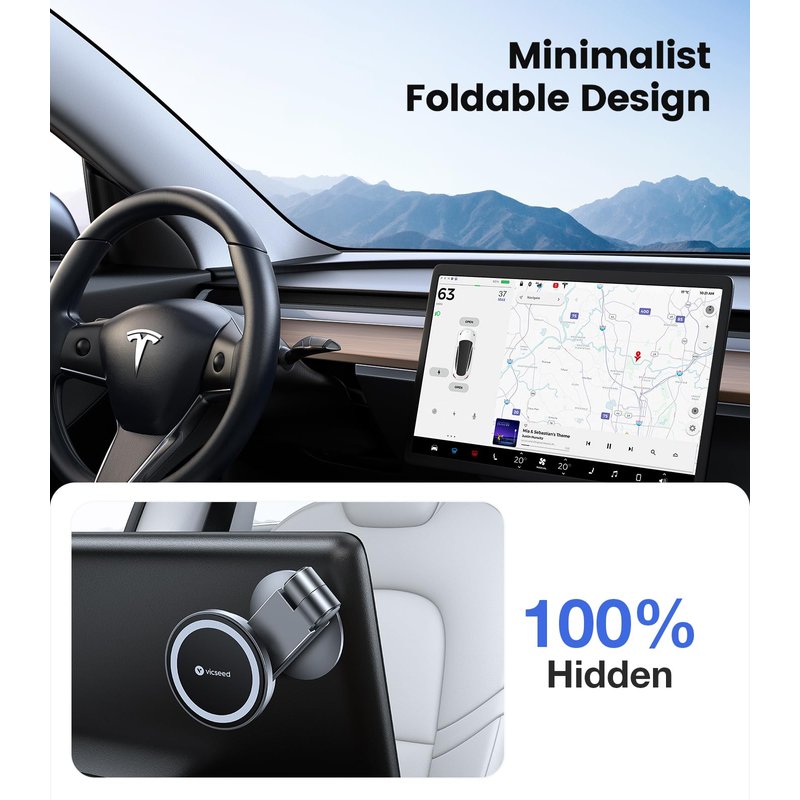 2023 Upgraded Tesla Phone Mount - The Best of the Best! This Tesla Phone Holder is designed for Tesla Model 3 and Tesla Model Y. Compatible with all phones. VICSEED Tesla Phone Mount Main Feature: Super Strong Magnetic Tesla Model 3 Phone mount: Tesla Phone Holder has built-in 12 larger and stronger N52 magnets, providing super strong suction power even can hold 10X phones steadily. BEST DRIVING VIEW Model y Phone Mount: Tesla Model y phone holder will not affect your driving view—the most suitable installation location. tesla model 3 phone holder Compatible with All Phones: tesla magsafe phone mount fits all phones and thick cases. Fits iPhone 15 / 15 Pro / 15 Pro Max / 14 / 14 Pro / 14 Pro Max / 14 mini /14 Plus/13 / 13 mini/ 13 Pro/ 13 Pro Max/ 12/ 12 mini/ 12 Pro/ 12 Pro Max 360° Rotatable tesla iphone mount: With a flexible 360 ball joint, the phone mount for tesla model 3 allows you to use your smartphone horizontally or vertically. 100% Foldable Hidden: The foldable design hides it on the back of the screen when you don't need it. tesla model y accessories 2023 tesla model 3 accessories 2023