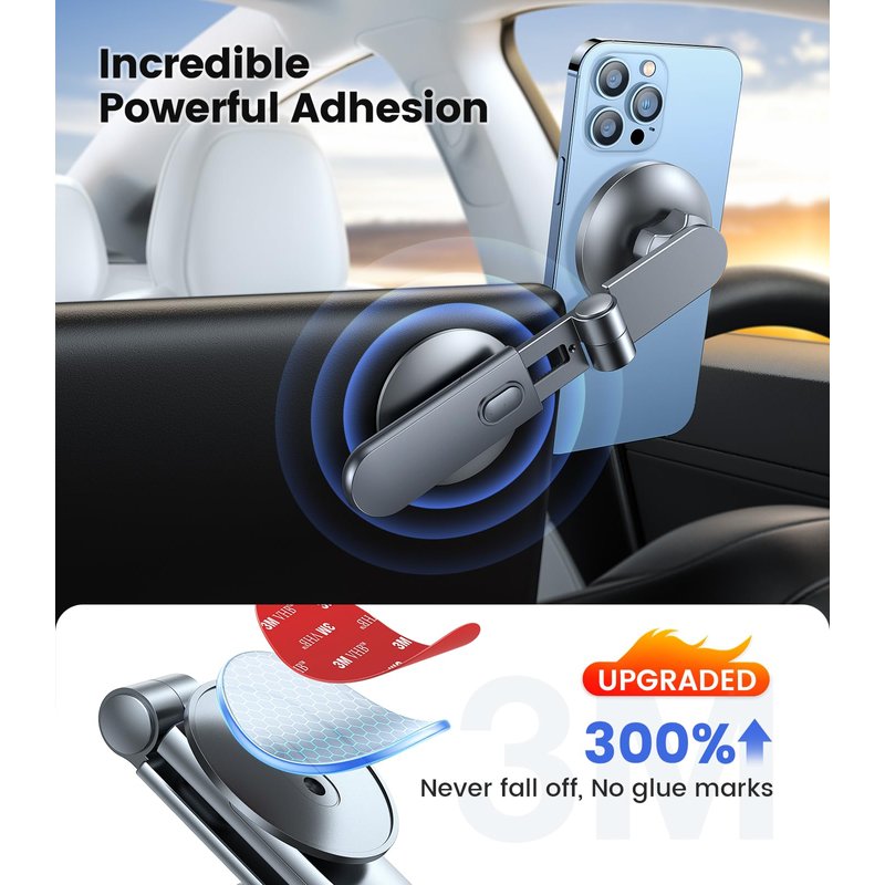 - 【𝗨𝗹𝘁𝗿𝗮 𝗣𝗼𝘄𝗲𝗿𝗳𝘂𝗹 𝗠𝗮𝗴𝗻𝗲𝘁𝗶𝗰 𝗙𝗼𝗿𝗰𝗲】Our designs exceed safety standards. This tesla magsafe phone mount has built-in 12 larger and stronger N52 magnets, providing super strong suction power even can hold 10X phones steadily. This tesla iphone mount will keep your phone still while driving over the bumpiest roads. The magsafe car mount is annular closed magnetic field, won't interfere with the signal to keep the navigation and calling open.