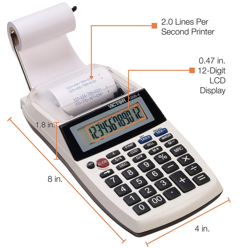Victor 1205-4 12 Digit Portable Palm/Desktop Commercial Printing Calculator, 1.8" x 4" x 8"