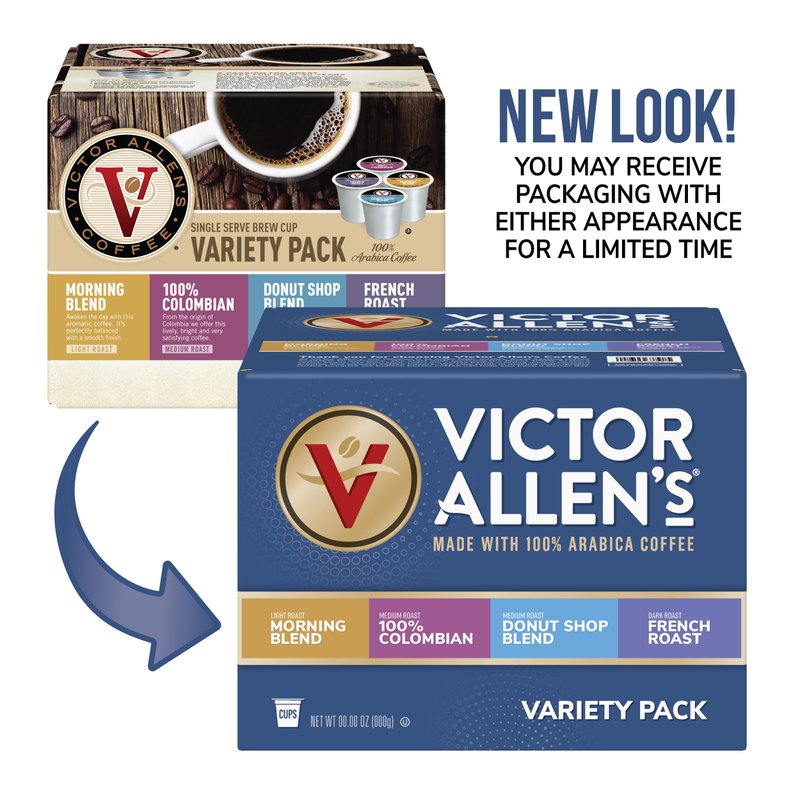 - Contains 1 box of 42 pods of Victor Allen's Coffee Single Serve Coffee Pod Variety Pack (Flavors Included: Morning Blend, 100% Colombian, French Roast, Donut Shop Blend; 42 pods total)