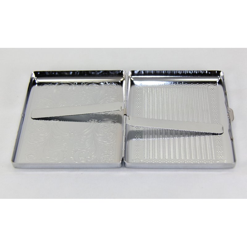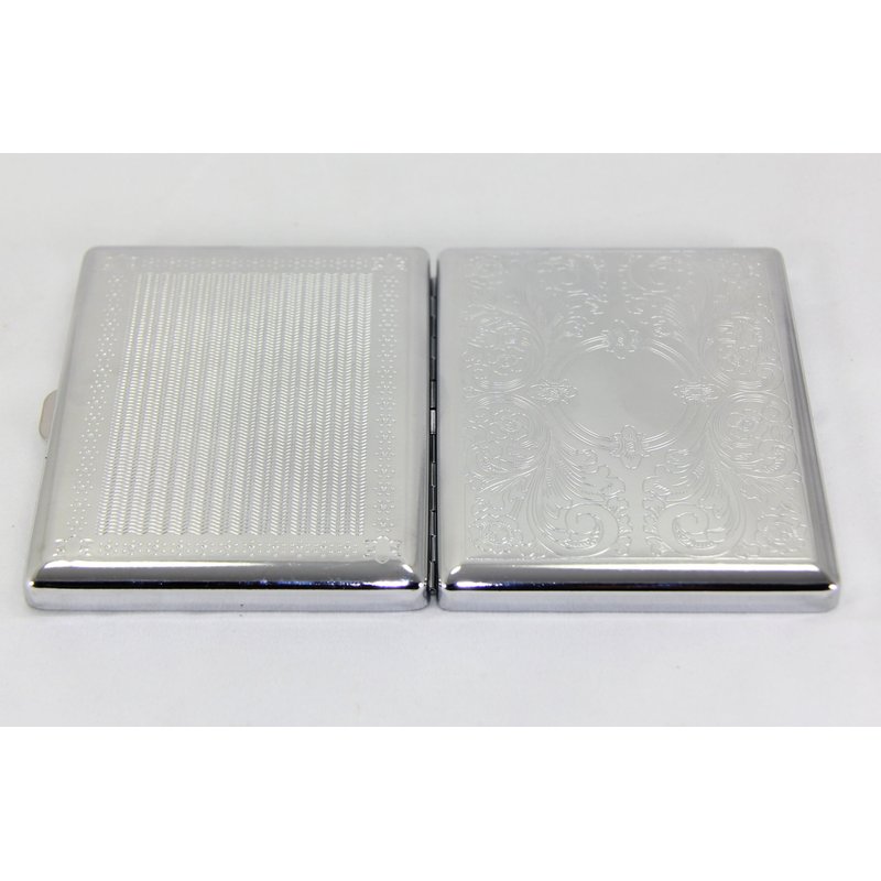 This is a very popular metallic silver color classic design cigarette case. Sleek, double sided and crush proof. It can hold up to 20 king size cigarette, the regular 70s or the long 100s.