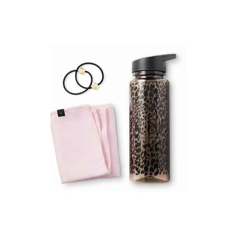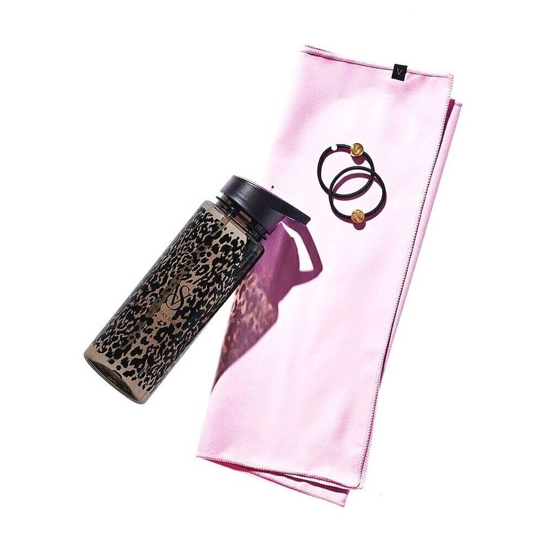 Victoria's Secret Leopard On Point Exercise Workout Kit Water Bottle Hair Ties Towel