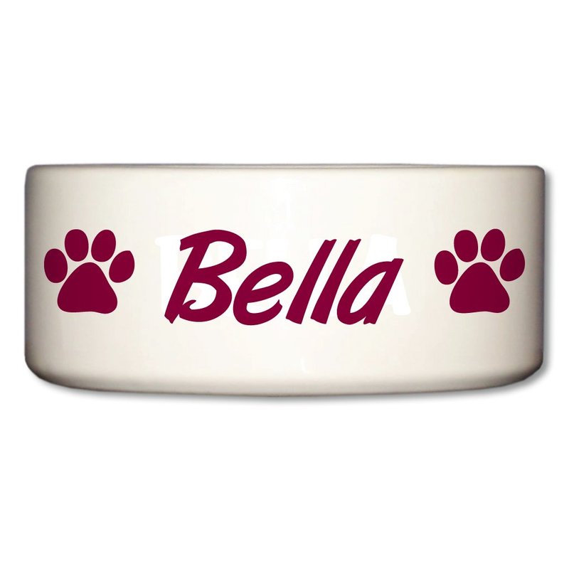 - UNIQUE - This Ceramic Dog Bowl - Bella - Paw Prints Design will be a fun way to change up your pet feeding area. Use for dog food and get another for your favorite pets’ water. Let your pet dine in style with this large pet bowl. Many different options to choose from including customizable bowls.
