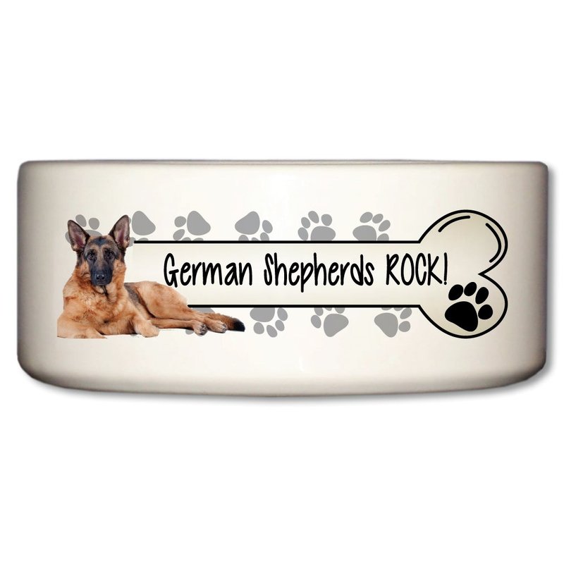 - This Ceramic Dog Bowl – German Shepherds Rock - Paw Prints Design ceramic pet bowl will be a fun way to change up your pet feeding area. Use for dog food and get another for your favorite pets’ water. Let your pet dine in style with this large pet bowl. Many different options to choose from including customizable bowls.