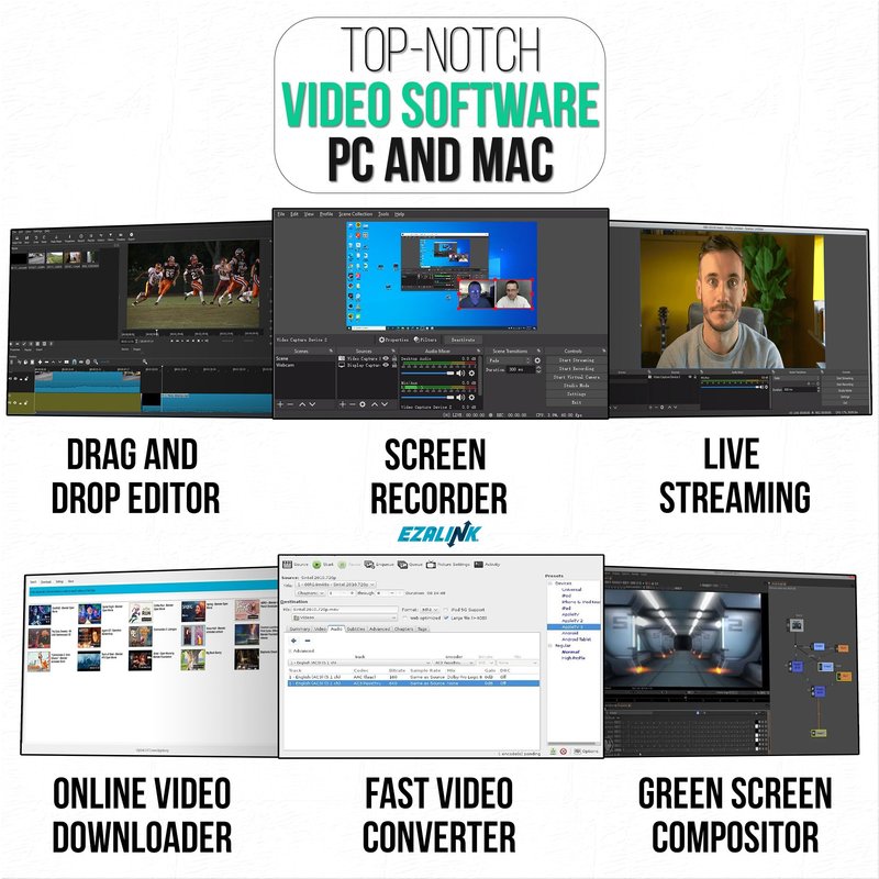 - Ezalink Exclusives: 3GB Sound Pack with royalty-free cinematic sounds, music, and effects. Live Streaming and Screen Recording Software. Compositing Software. 64GB USB flash drive for secure offline storage.
