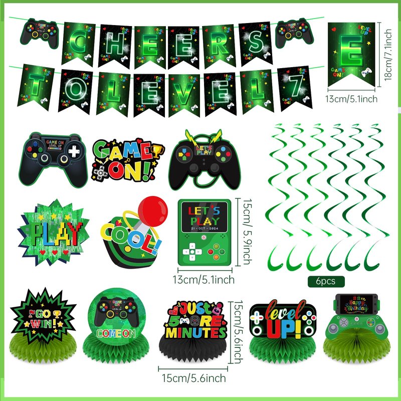 - 【Video Game Themed】: The video game themed happy birthday party decorations feature a variety of classic video game pattern elements, presenting an amazed for your Video Game themed birthday party. We have green black and blue black two colors for you to choose from, meet all your requirements