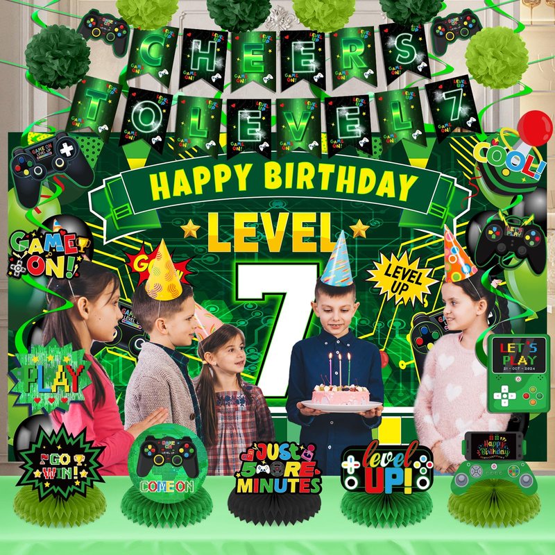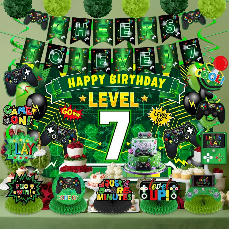- 【Widely Used】: Our video game 7th happy birthday party banner hanging swirls decorations are suitable for your kids' 7th birthday, 7th anniversary, and other level 7 parties. You can decorate them on the walls, ceiling, window, overhangs, archway, car, and doorway and have a cheerful and unforgettable birthday party with family and friends