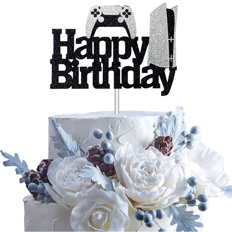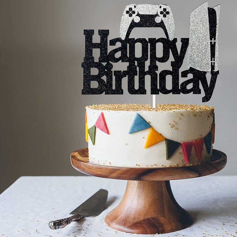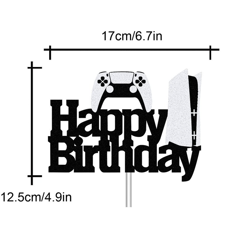 - Size:Size:This ps5 happy birthday cake topper is approx 6.7" wide and 4.9" high (not include the stick ). Perfect for 6 to 10 Inch Cakes.