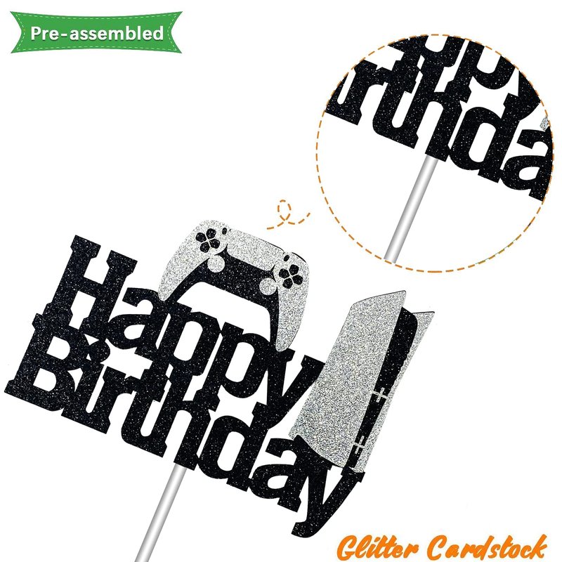 - Application: It's a funny cake decoration for your kid's/boyfriend/husband/father's birthday. Glitter black and sliver video game cake topper design is perfect for cake decoration for gaming themed birthday party, baby shower, parties or other events.