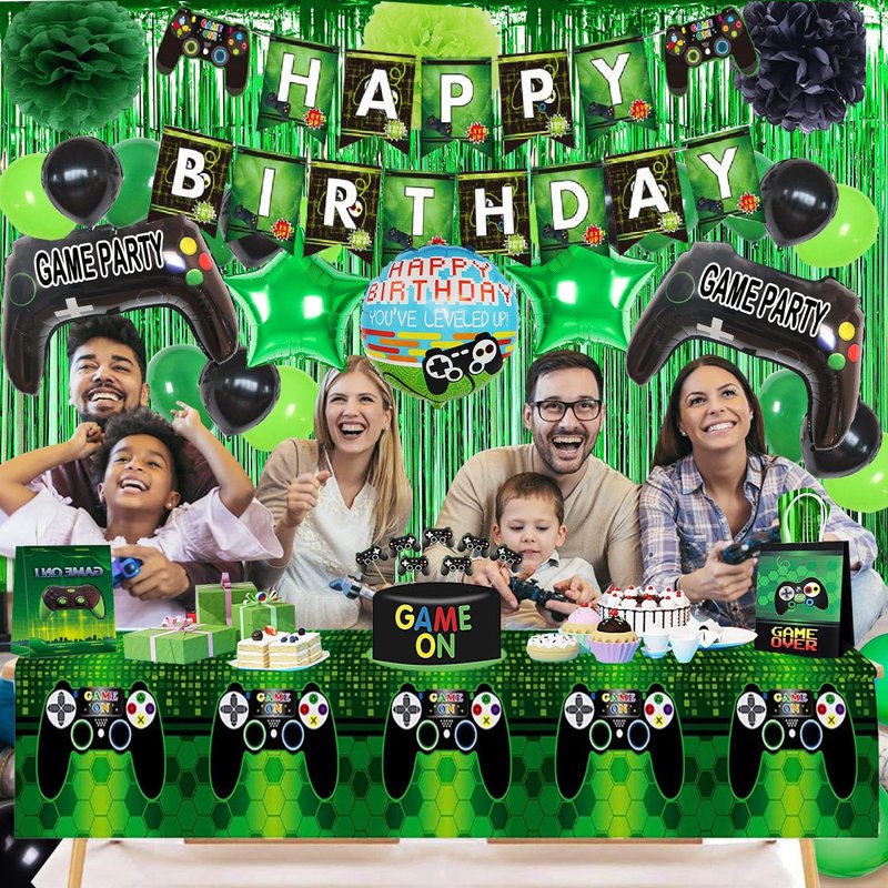 - [Great Value Pack:]:Friends or family love gaming? This is the perfect set for your party, both kids and adults would love it if you are fans of video game on! Wow your guests or family and create exciting atmosphere in the minute they see it! Use banners and balloons to decorate the party, use them to make backdrop or photo booth, bring unforgettable moments and beautiful memories!