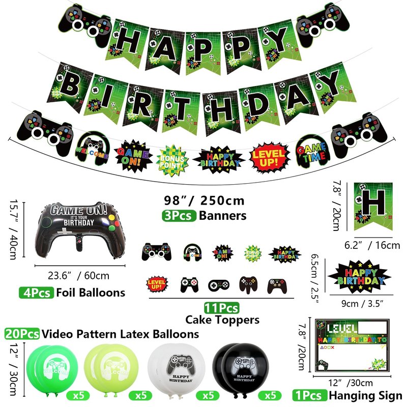 - 🎮Cool Video Game Theme Design: Celebrate an unforgettable video game-themed birthday party with this decoration set. The special number foil balloon are specially for your kid's birthday, DIY name hanging sign can be used to write the name and age. Taking this gaming party decorations package home to hold a special birthday party for your boy, and leaving a good memory with your friends and family.