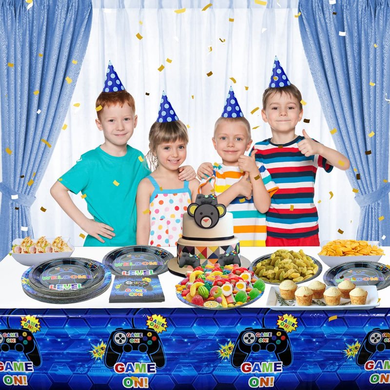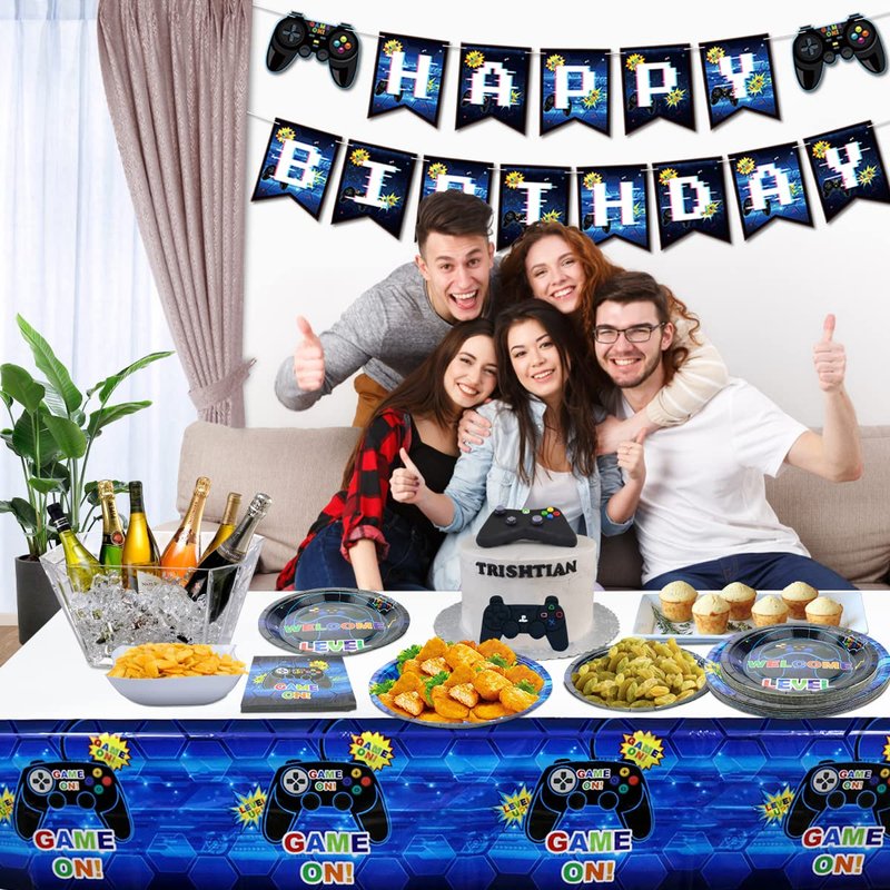 Video Game Party Decorations, Disposable 7” and 9” Plates and Napkins, Tablecloth Video Game Party Set, Gaming Birthday Party Supplies for Boys Gamers, 61 PCS