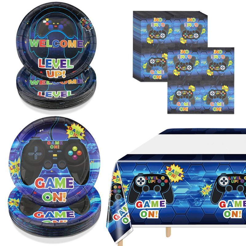 - Valuable Package: This video game themed party supplies includes, 20Pcs dinner plates, 20Pcs dessert plates, 20Pcs napkins, 1Pc tablecloth.