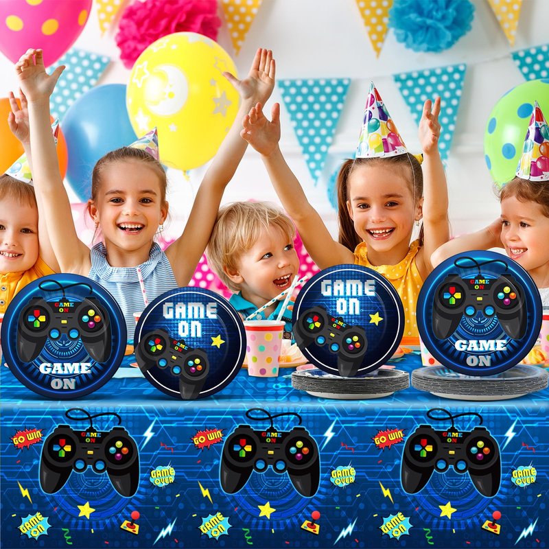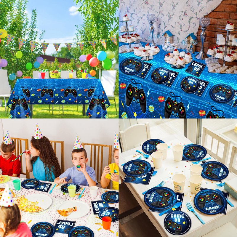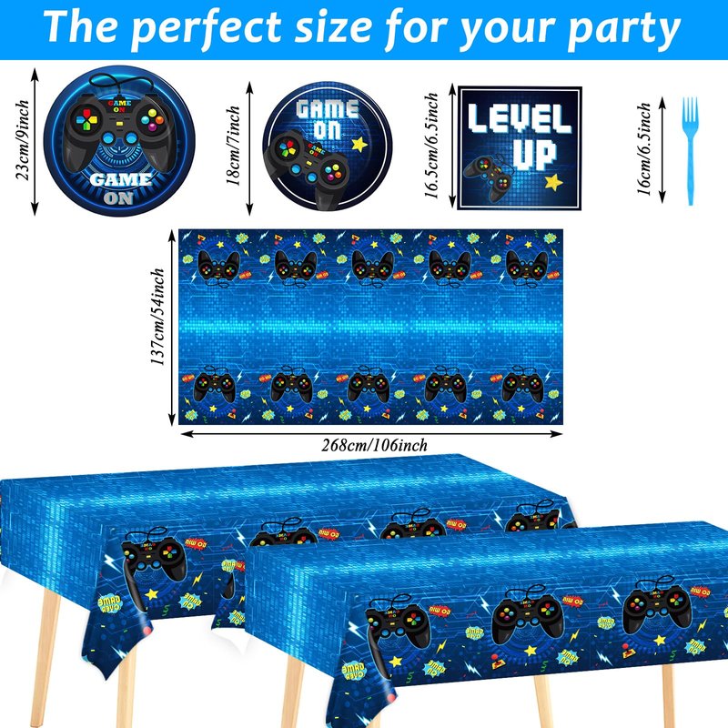 - 【Gaming Party Table Settings】With our high-quality Gaming Party Decorations Includes video game plates napkins, Tablecloths, you'll have enough supplies to cater to any game-themed party or event. These Gaming Party Birthday Decorations Favors will make your table setting look fantastic and accommodate all your guests, leaving a lasting impression on them. Ensure a memorable and enjoyable gathering with our Video Game Party Supplies Paper Plates Napkins.