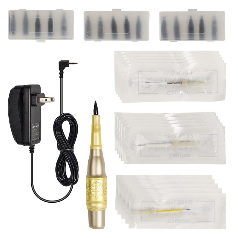 VideoPUP Tattoo Pen Make up Kit, Makeup Eyebrow Tattoo Pen Machine Kit Cosmetic with Needles Tips Power Supply Kx-104