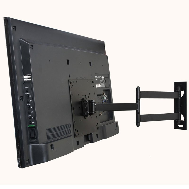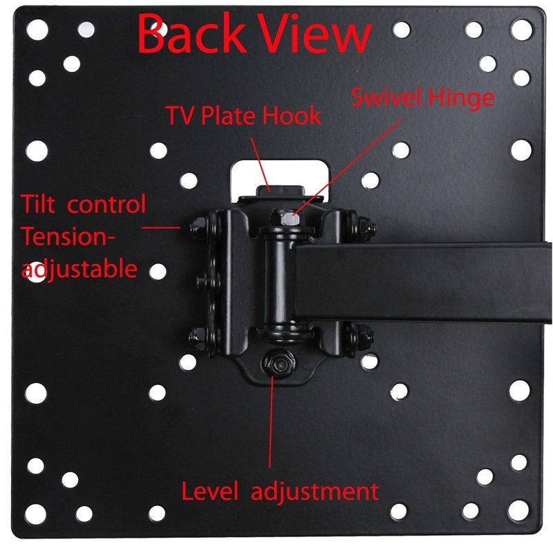 This VideoSecu new Articulating mount is a breakthrough in swing arm mount design, combining strength, easy installation. The TV mount fit VESA 200x200mm/200x100mm/100x100mm/75x75mm (8"x8"/8"x4"/4"x4"/3"x3"). Please check your TV VESA, these are square or rectangular patterns 3" 4" or 8" per side on the rear of your display. The high-tech look mount offers 15 degrees up and down tilt, 180 degrees of swivel, 6 degrees rotation and extension up to 20 in for viewing angle and TV placement adjustment. The mount is for single stud mounting. Will the mount fit my TV? Firstly, please check the weight of your display, it should be less than 66 lbs. Secondly, If your Monitor or TV has 4 mounting holes on the back of the screen that are 200x200mm/200x100/100x100/75x75 (8"x8"/8"x4"/4"x4"/3"x3") apart from each other vertically and horizontally this bracket will fit. In addition, please check the area inside the 4 mounting holes to make sure there are not any plugs. Otherwise, the plate may block the plugs.