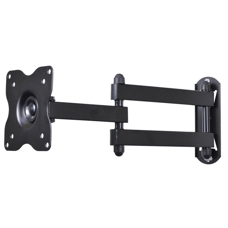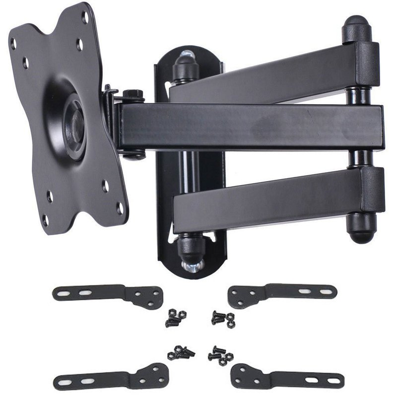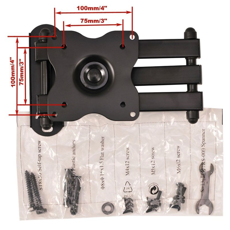 The swing arm TV wall mount for LED LCD TV Monitors, makes it easy to view your TV or Monitor from different angles. Fits TV or Monitor with VESA 75x75(3"x3"), 100x100(4"x4"), 200x100 (8"x4"), 200x200 (8"x8"), maximum loading capacity 44 lbs. This dual link arm wall mount gives you 15" extension from the wall with maximum flexibility. You can also fold it close to your wall for a low-profile appearance. Detachable VESA plate lift and hook design makes for one-person installation. Post installation level adjustment to ensure perfect level. Pan, tilt, swivel, and roll function provide smooth adjustment for all directions. Durable steel construction with black powder coated finish. Common mounting and screen attachment hardware included.