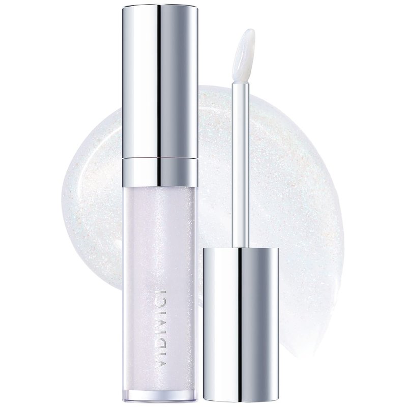 VIDIVICI Millennial Lip Oil #02 Illumination - Non-Sticky Dewy Gloss for Moisturized & Voluminous Lips - Illuminating Transparent Lavender-Blue Glitter Lip Makeup, 0.12 fl.oz.