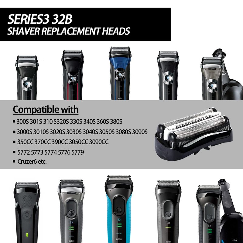 32B S3 Electric Replacement Shaver Head Accessories For Braun Series 3 Shaving Razor Head, Suitable for Braun S3 3040s 3000s 3050cc 3010s 3070cc 3080s 3090s 310s 3020s 330s 370cc-4 380s-4, 3090cc Etc.