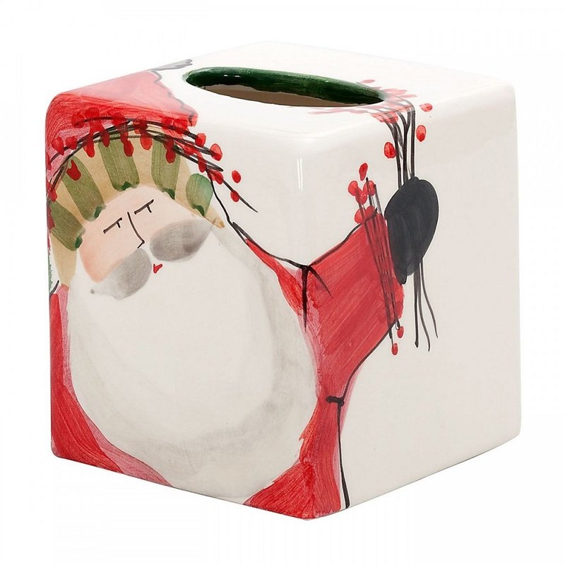 Vietri Old St. Nick Tissue Box, Christmas Ceramic Home Décor