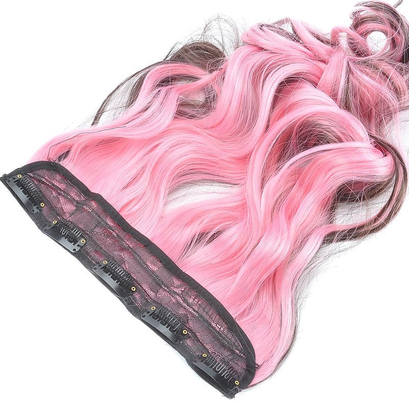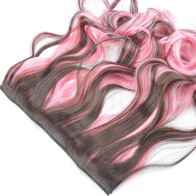 Vieuinaux 18inch Long 3/4 Full Head One Piece Curly Wave Short Clips in on Synthetic Hair Extensions Hair Pieces for Women 5 Clips Hairpieces (Brown/Light Pink Mixed)