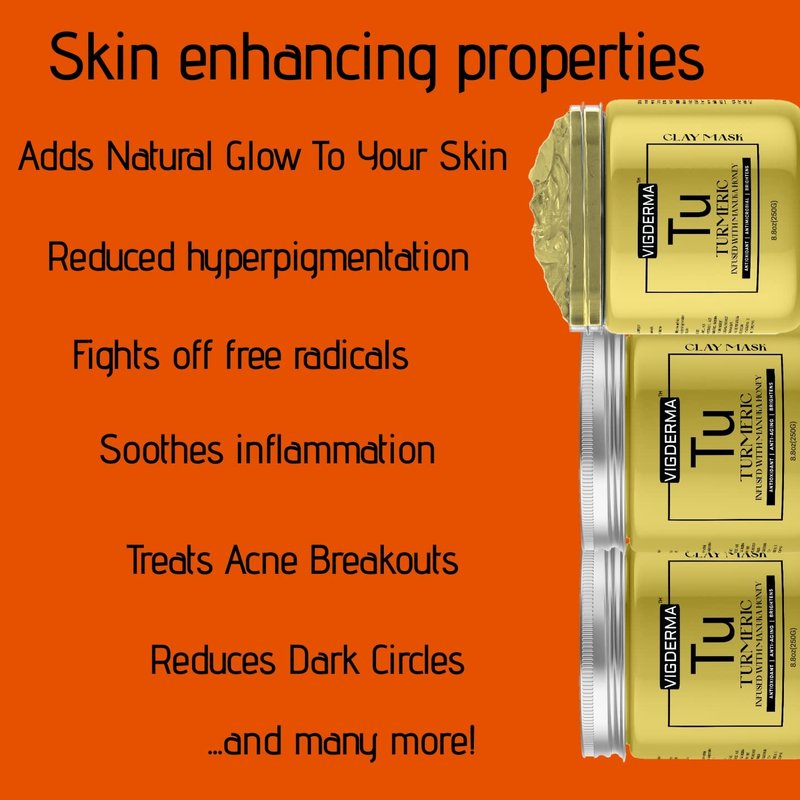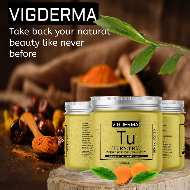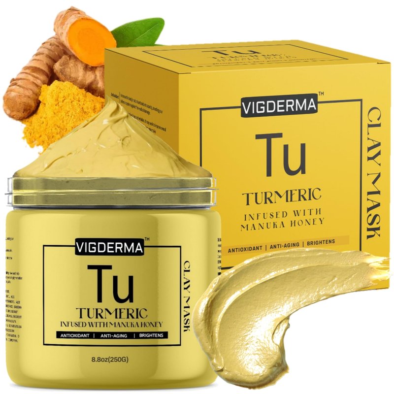 VIGDERMA Vitamin C and Turmeric Infused With Manuka Honey Clay Mask for Face and Body - Spa Quality, Dark Spot Remover for Face and Acne Treatment, Reduce Hyperpigmentation - Brightens Skin - 8.8 oz
