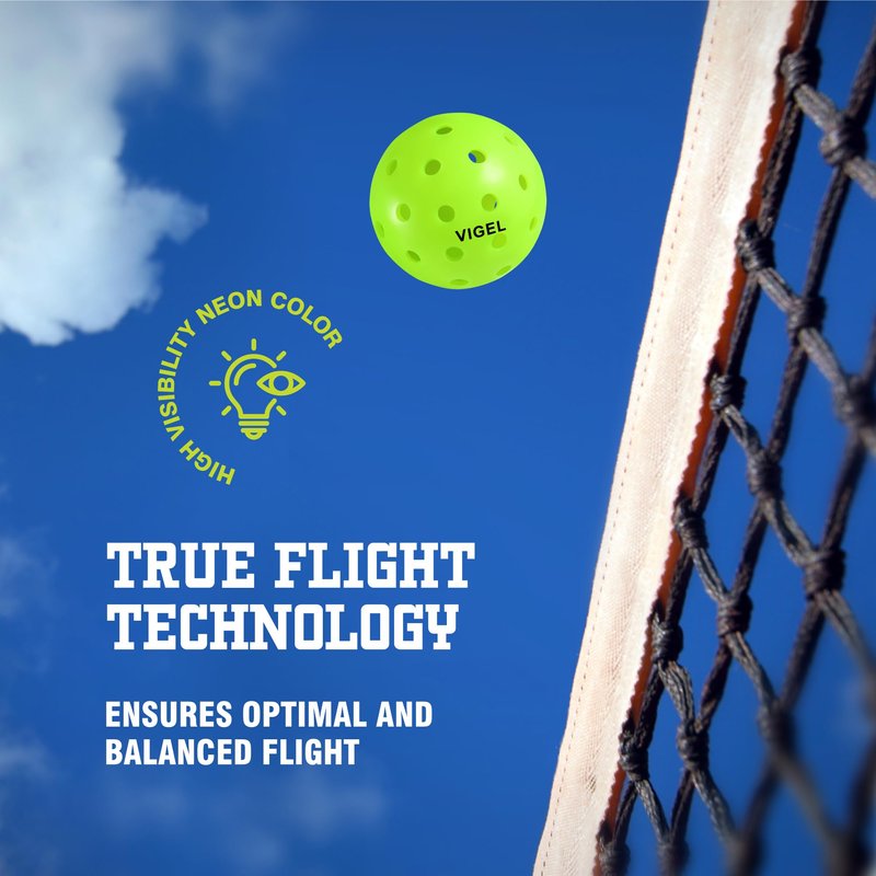 At Vigel, we are committed to providing our customers with top-notch products and exceptional service. Our primary goal is to ensure that you have the best possible experience with our products, backed by our unwavering dedication to quality and customer satisfaction. Introducing Our Premium Outdoor Pickleball Balls Elevate your game with our high-quality outdoor pickleball balls, designed to offer superior performance, durability, and consistency. These balls have been meticulously crafted to meet the highest standards and are perfect for players seeking to enhance their skills and enjoyment on the court. Some of the amazing key features of our pickle balls: 1.Unmatched Quality & Performance - Enjoy top-of-the-line outdoor pickleball balls, engineered for optimal gameplay and endurance. 2.Perfectly Balanced - Experience true flight and consistent bounce with strategically placed, precision-drilled holes for impeccable balance. 3.USAPA Approved - Confidently compete in sanctioned tournaments, knowing these balls meet all USAPA requirements. 4.Ideal Specifications - Featuring 40 rotational holes, a 26-gram (.92 oz.) weight, and a 74mm (2.9 in) size for high-performance play. 5.Durable & Long-lasting - Rely on the robust construction of these pickleball balls, designed to withstand countless outdoor matches and practice sessions. 6.Great for All Skill Levels - Whether you're a seasoned pro or a beginner, these balls cater to players of all skill levels, enhancing your overall experience. 7.True Flight & High Bounce - Benefit from a consistent bounce and accurate flight, ensuring seamless gameplay and increased enjoyment on the court. 8.Retains In Shape – Our ball is a rotational ball, it’s supper hard designed to retains in shape for game after game. Don't Settle for Less – Elevate Your Pickleball Experience Today! Why wait any longer? Invest in our premium outdoor pickleball balls and experience the difference in quality, performance, and durability.