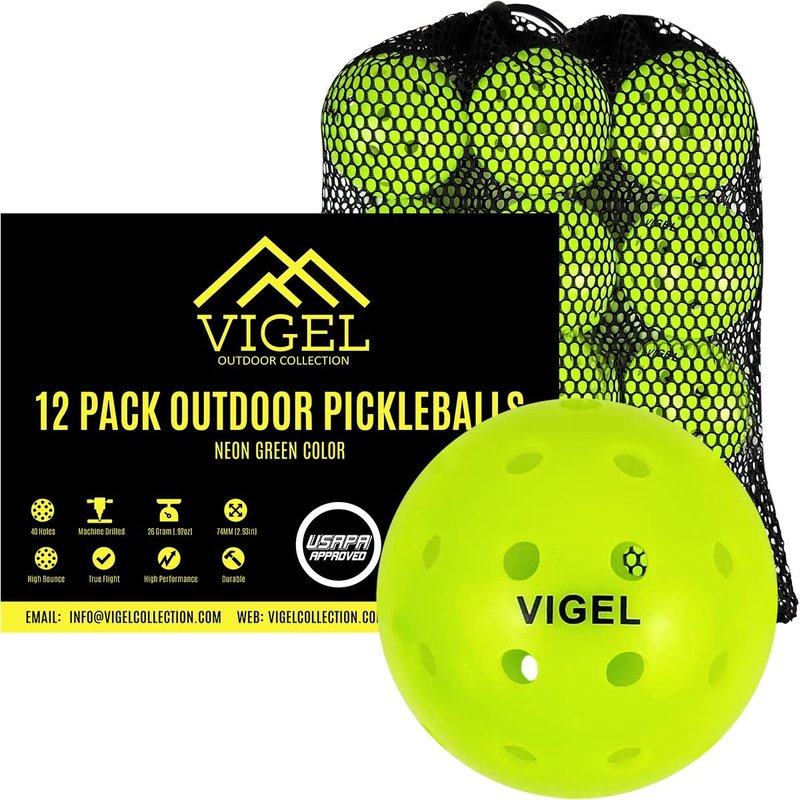 Vigel Premium Outdoor Pickleball Balls Set of 12 USAPA Approved, Tournament and Competition Play, Perfectly Balanced, High Bounce, True Flight, Durable, 40 Hole Pickleball.