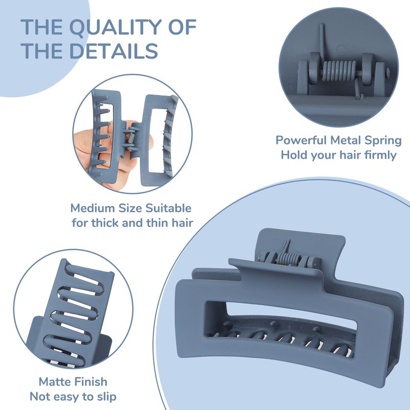 - Medium Size: 3.5 x 2 x1.1 inches, and they can 180° wide opened hold your hair firmly, suitable for thick and thin hair