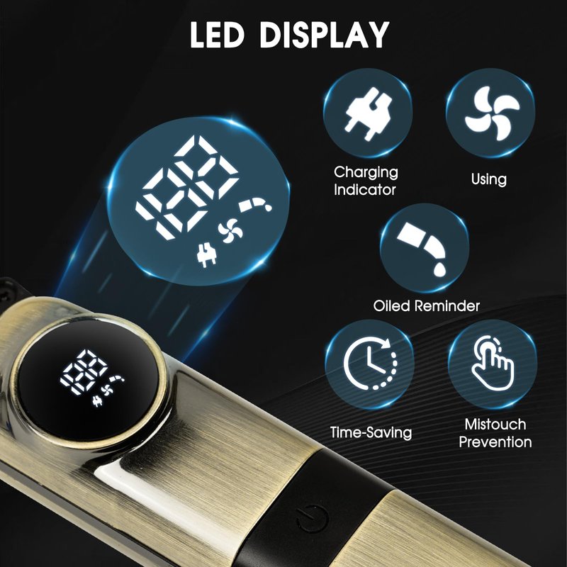 - 【LED Display & Anti-Mistouch】 The mens trimmer features a visual battery indicator with three icons for charging, oil drop, and in-use status. Long press for three seconds to lock/unlock the device, preventing accidental touches for added safety.