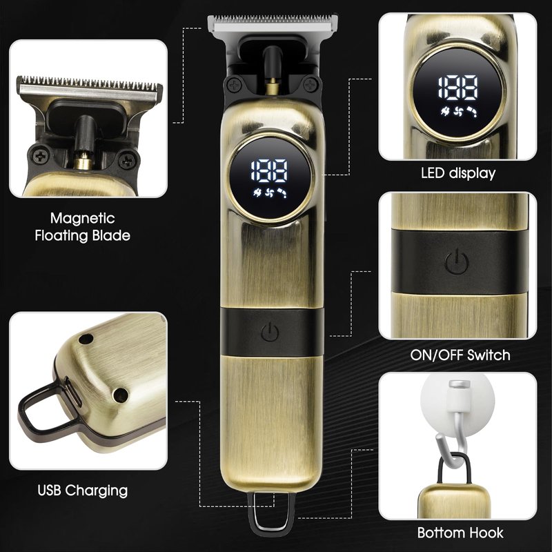 - 【Vintage Design & Smooth Touch】 Our professional hair clippers feature a classic bronze color design, offering a soft touch that is anti-slip and sweat-proof. Ideal for both barbers and home haircutting, these electric razor for men help men maintain a perfect look. The trimmers for barbers provide exceptional performance and style for manscape.
