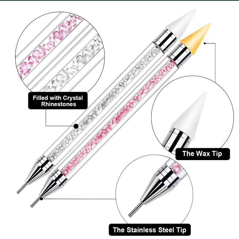 - Dual-end rhinestone picker: the wax tip is for pickup rhinestones and the stainless steel tip move them to proper nail surface positions. with extra tweezers, you can pick up more heavier and bigger 3D nail art decorations.