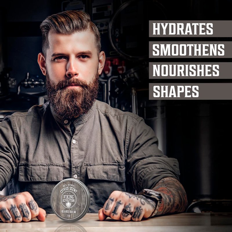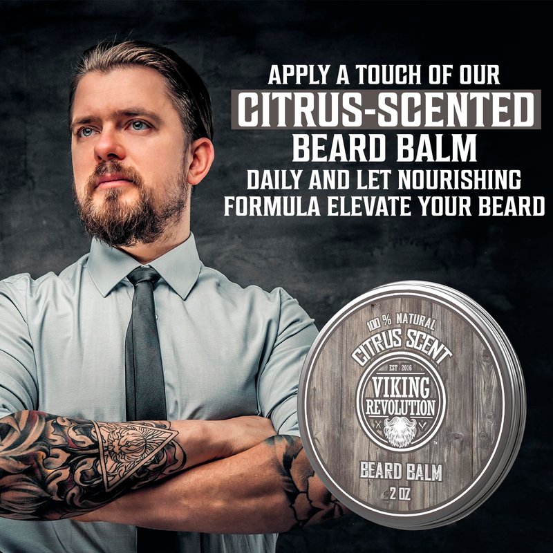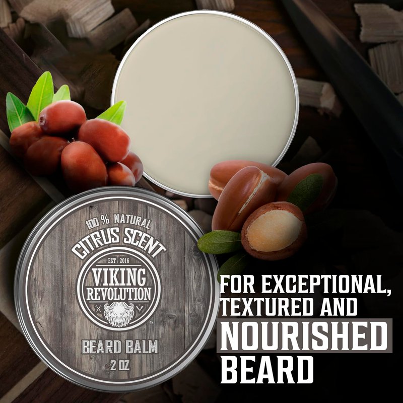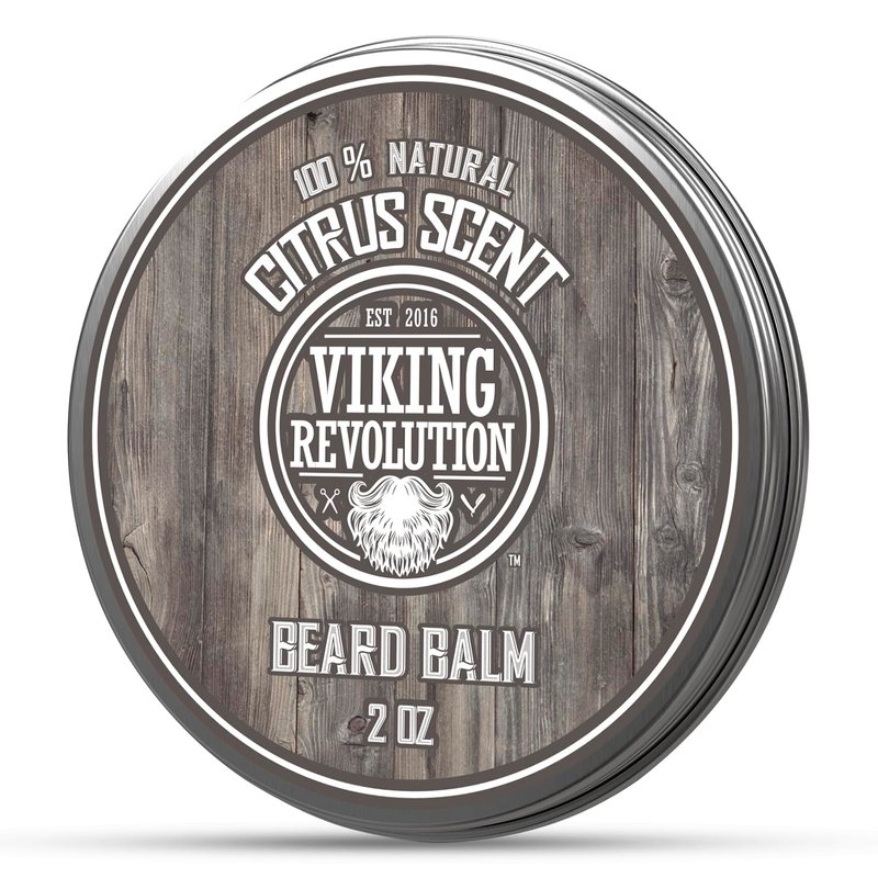 Viking Revolution Beard Balm - All Natural Grooming Treatment with Argan Oil & Mango Butter - Strengthens & Softens Beards & Mustaches - Citrus Scent Leave in Conditioner Wax for Men - 1 Pack