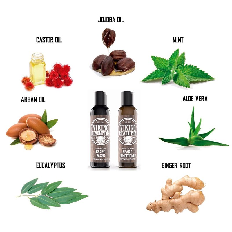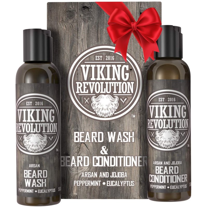 Viking Revolution Beard Wash & Beard Conditioner Set w/Argan & Jojoba Oils – Softens, Smooths & Strengthens Beard Growth - Natural Peppermint and Eucalyptus Scent - Beard Shampoo w/Beard Oil (5 oz)
